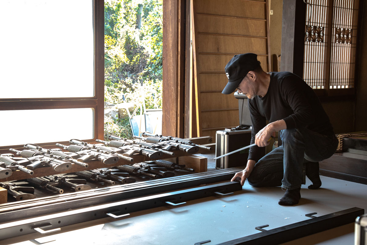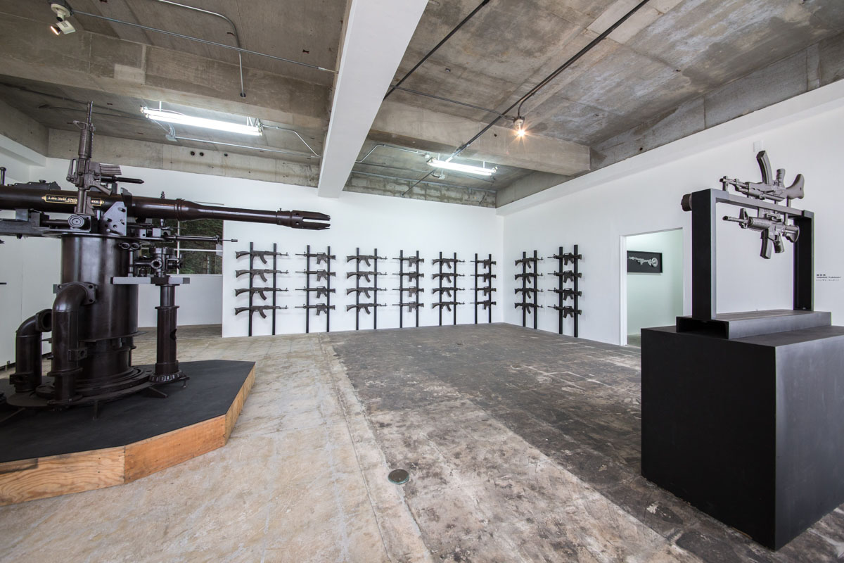 榎は1970年代末に小型大砲を制作したことを機に「兵器」によるアートの作品を手がけはじめた。本展では、鋳鉄のマシンガン・旧ソ連製のAK-47と米国製のAR-15、そして廃鉄を再利用し制作された巨大大砲「Liberty」を展示。兵器や武器が人の心を惹きつける感覚から、人間の不条理な面を照らし出す。